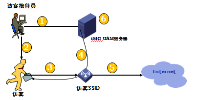 2) iMC EIA服務(wù)器通過Email、短信方式將帳號及密碼信息發(fā)送給訪客;
