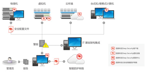 趨勢科技Deep Security客戶端:該小型軟件組件部署在受保護的服務(wù)器或虛擬機上,用于實施數(shù)據(jù)中心的安全策略(防惡意軟件、Web信譽、入侵阻止、防火墻、完整性監(jiān)控和日志檢查)。